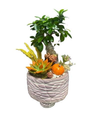 Ficus Gingseng Bonsai Tasarım 'da kullanılan çiçek ve aksesuarlar stok durumuna göre farklılık gösterilebilir.